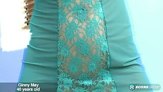 シルクストーキングの青いサテンパンティーシーン